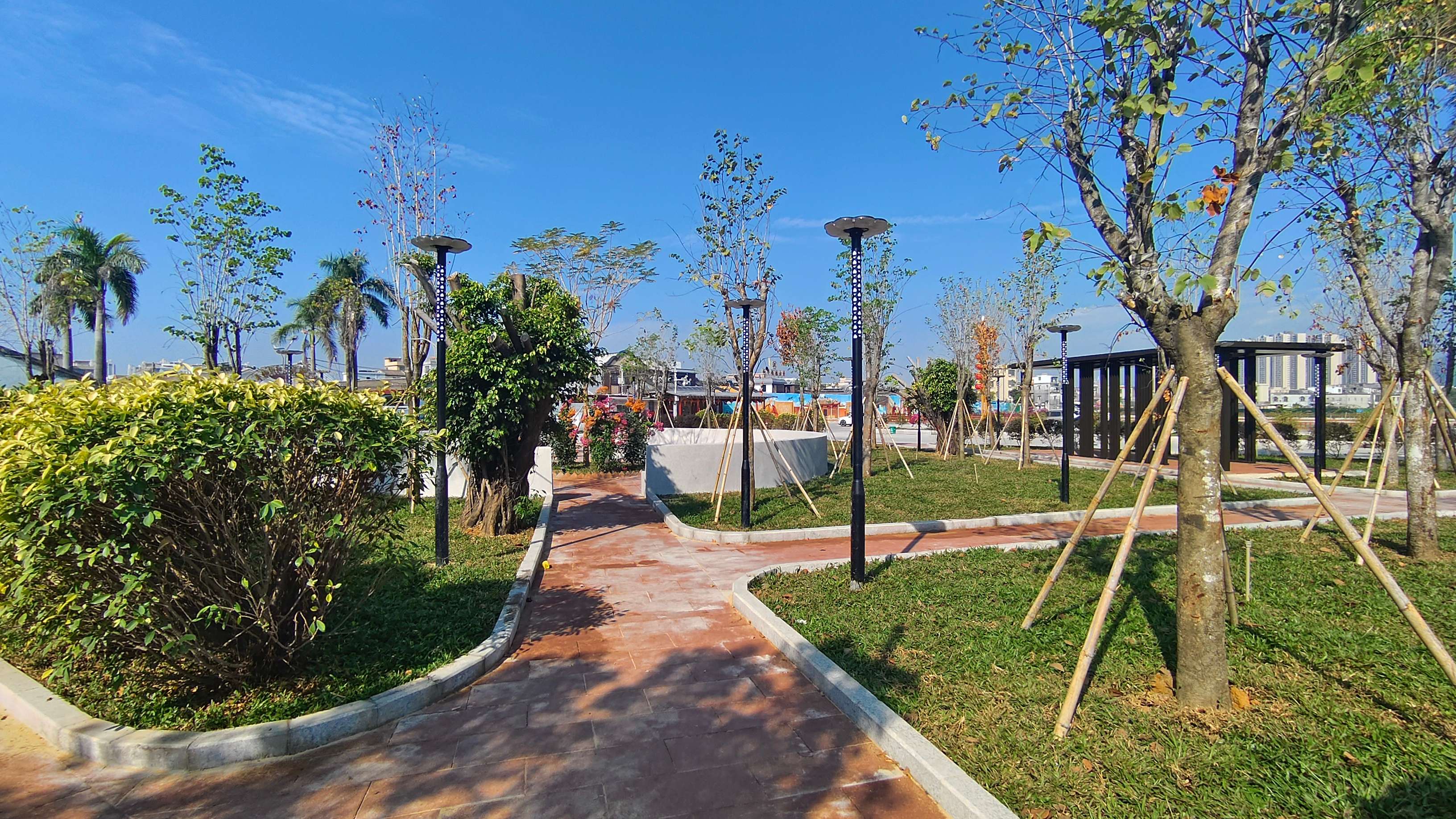 作为镇域品质提升的生动缩影,新和社区堂前洋片区的蜕变是和平镇全域推进改造的鲜活注脚。曾经的堂前洋,存在道路不畅、绿化匮乏、公共空间不足等短板,与群众对美好生活的期盼存在差距。新和社区坚持“民有所呼、我有所应”,创新资源整合模式,联动乡贤力量、发动群众参与,筹措资金530多万元启动堂前洋片区提质升级建设。如今的堂前洋,200 余株景观花木迎风而立,3000 多平方米的油草如绿毯般铺开,一道生机勃发的绿色屏障已然成型,17个“四小园”点缀其间,绘有大峰祖师故事的老寨墙成为“文化打卡点”,堂前洋池生态防护工程筑牢环境根基,道路硬化、路灯亮化、管网优化等配套设施全面落地,昔日“短板片区”彻底变身“宜居样板”。